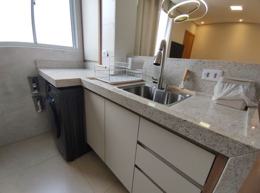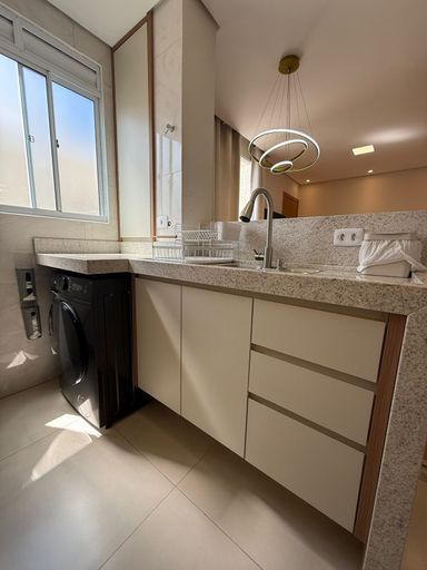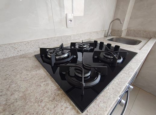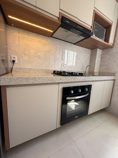 Armários de Cozinha Planejados, sugar, cooktop, forno, ventiladores de teto e Luminária da mesa.