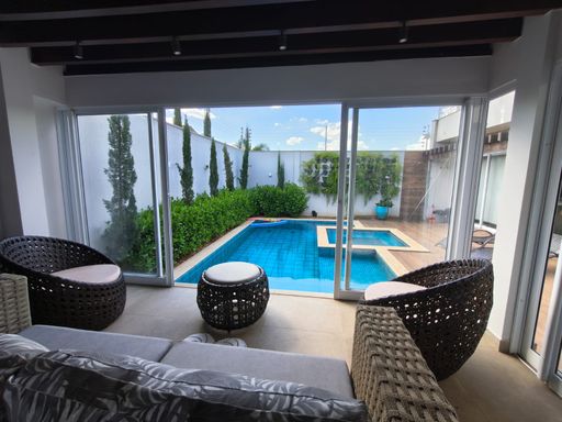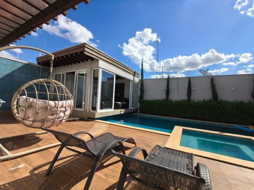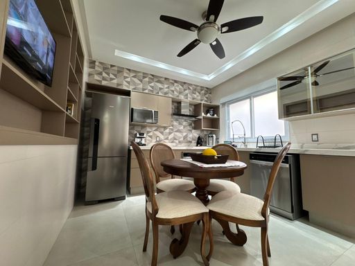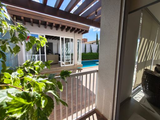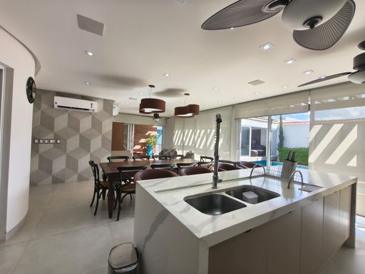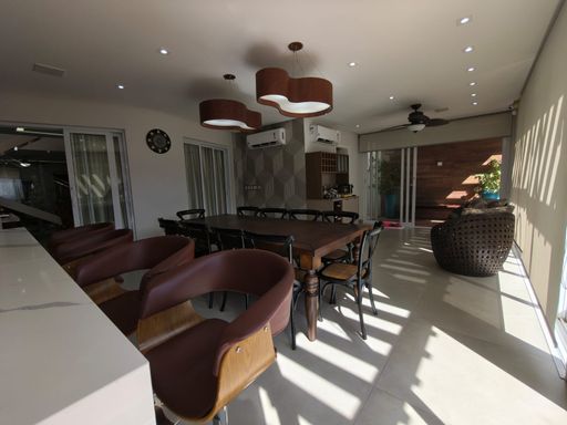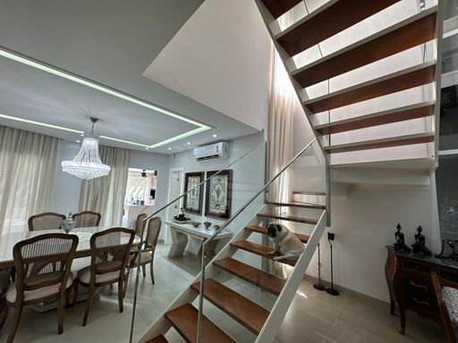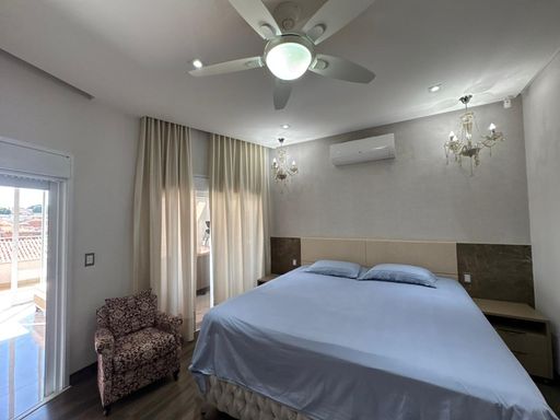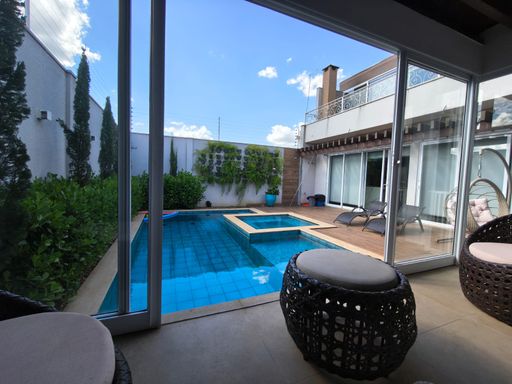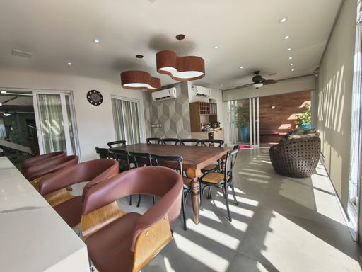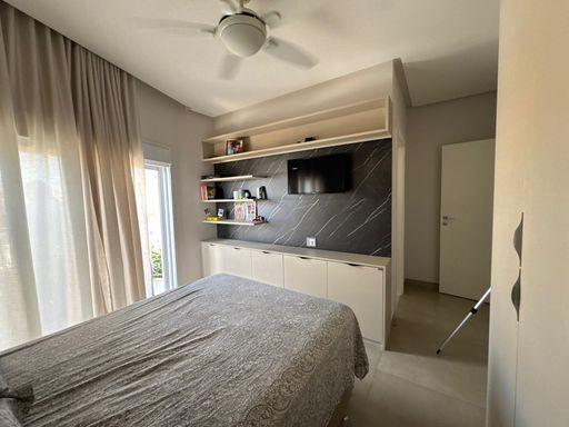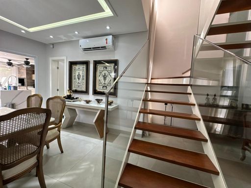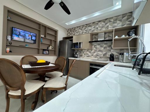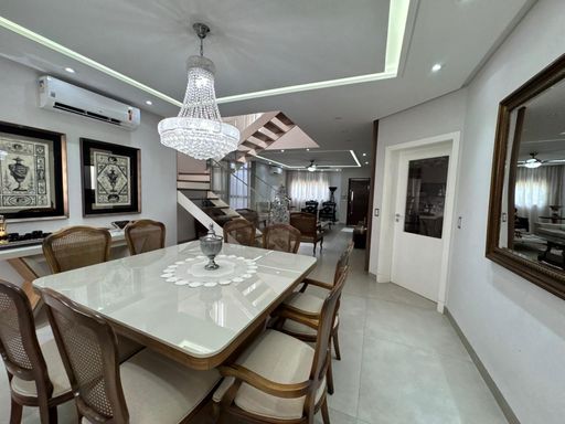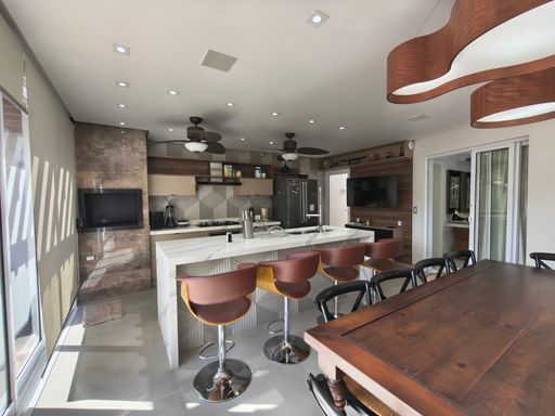 3 suites, sendo uma suite com closet, banheira e sacada privativa, living integrado com a sala de jantar, lavabo, cozinha planejada moveis todeschini,dispensa, elevador, escritório no piso superior, lavanderia, área gourmet com piscina, banheiro externo, sala para academia, energia fotovoltaica, sistema de segurança (câmeras e alarmes), garagem para 2 carros.