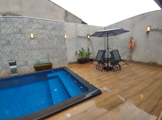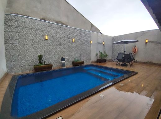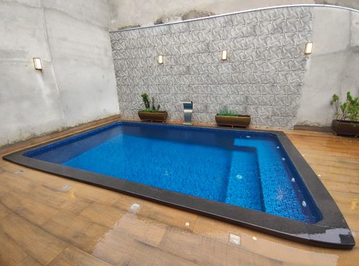 Piscina com hidromassagem, aquecida com leds e cascata