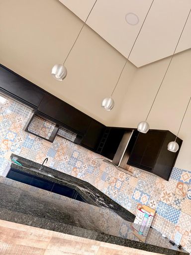 Cozinha equipada com cooktop e exaustor