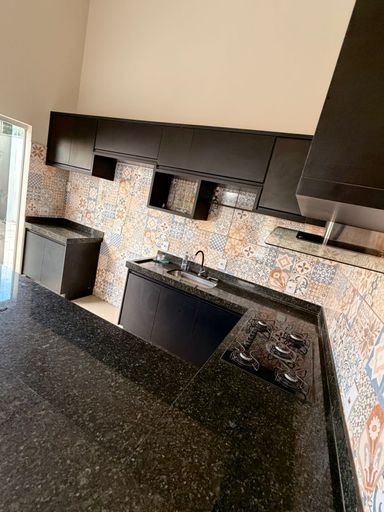 Cozinha equipada com cooktop, coifa