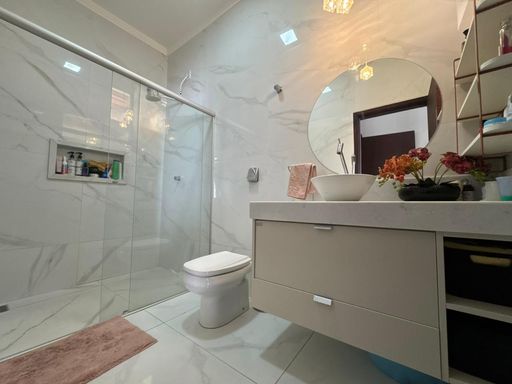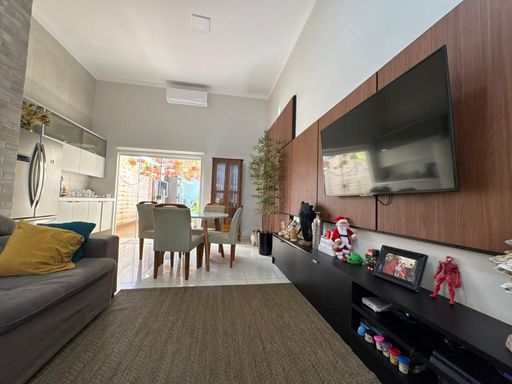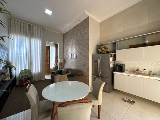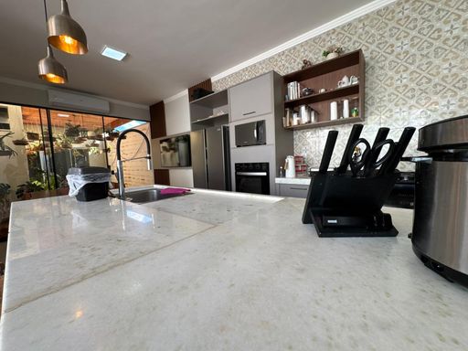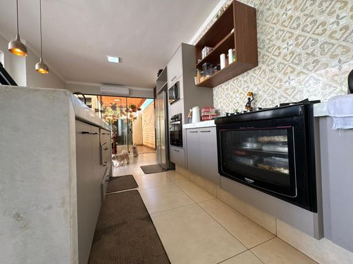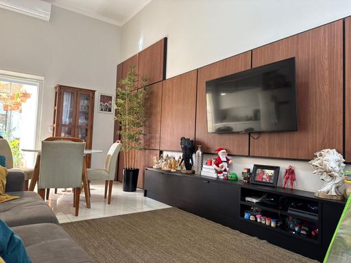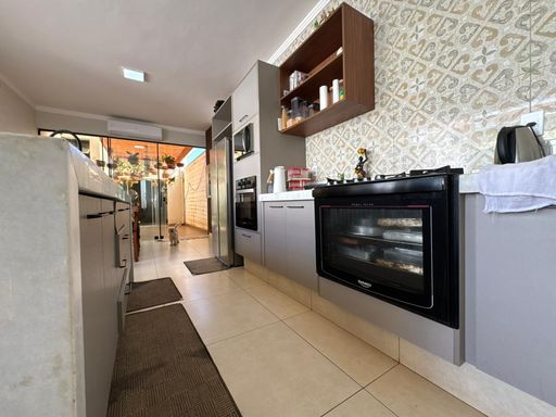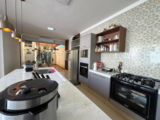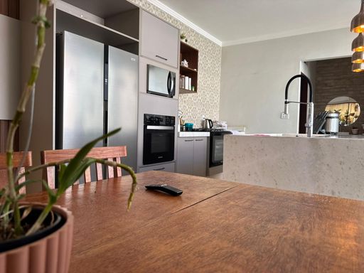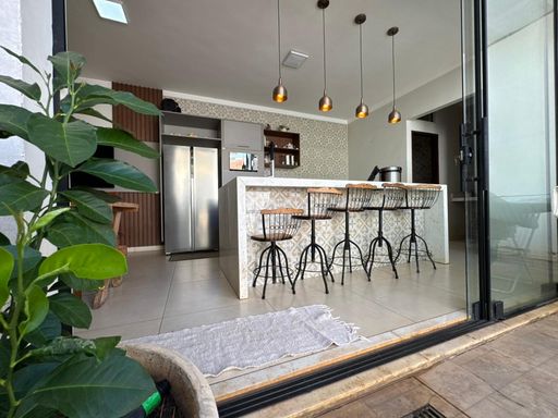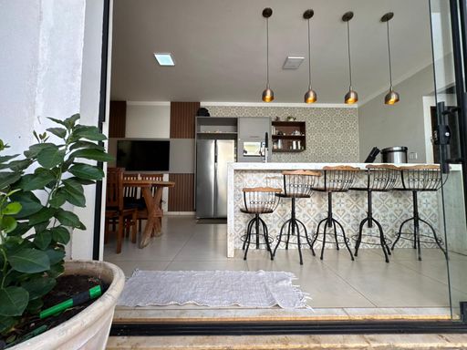 3 dormitórios, sendo uma suíte, sala de TV, Sala de jantar e cozinha integrada, área gourmet com churrasqueira, forno e cooktop, lavanderia, quarto de despejo, banheiro externo.