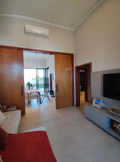 Sala com pé direito alto, proporcionando amplitude e luminosidade