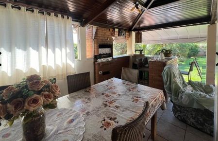A chácara possui 5.000 m² de área, com área verde documentada, oferecendo amplo espaço para lazer, cultivo e descanso.